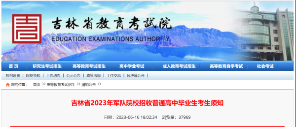 2023年6月16日,中国吉林网从吉林省教育考试院了解到,吉林省军区战备建设局发布吉林省2023年军队院校招收普通高中毕业生考生须知,一起聚焦!
