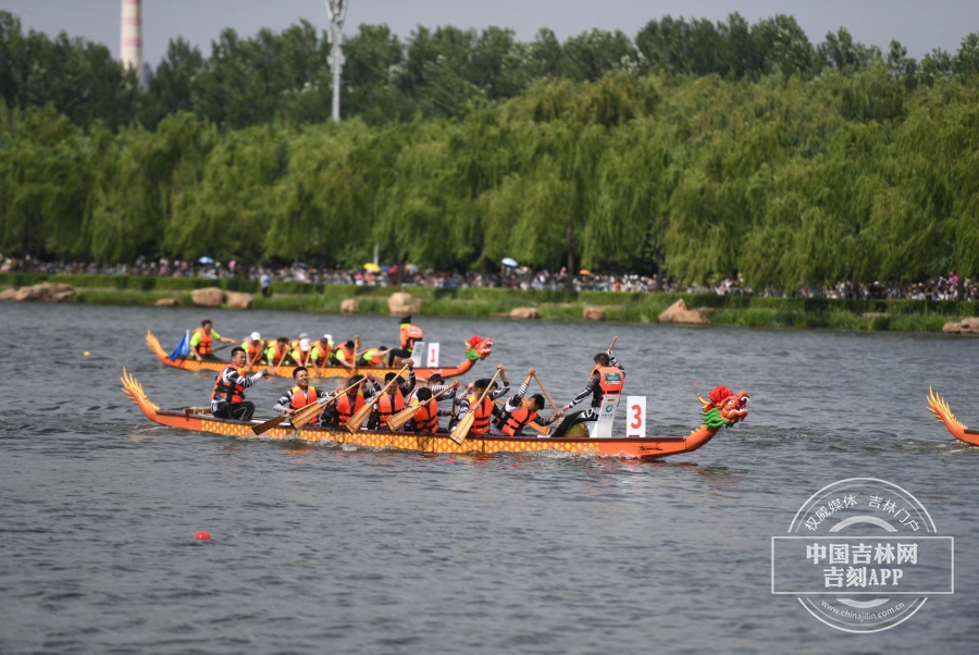 6月22日端午节当天,“龙腾春城 舟行吉水”吉林省第一届全国龙舟邀请赛在长春市伊通河卫星路至南环城路水域开赛。