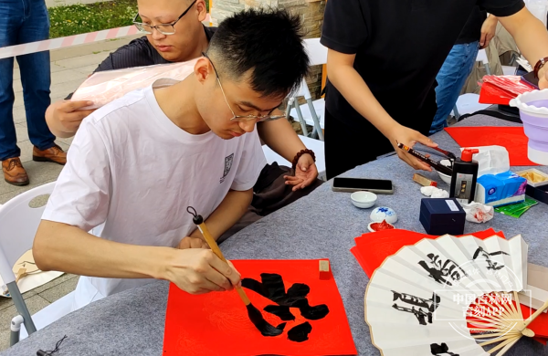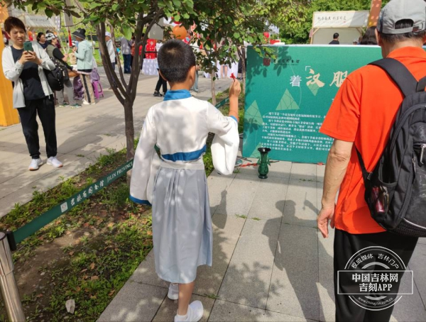 吉林省书法家协会会员张棋翔书写的“福”字,为市民送上了最真挚的祝福。“已经不记得写了多少个扇面、福字了。活动让大家感受中华传统文化的博大精深,非常有意义。”