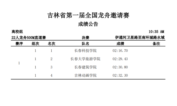 在高校组22人龙舟500米直道赛比赛中,长春科技学院龙舟队力压群雄,最终以2分16秒70的成绩成功夺魁。