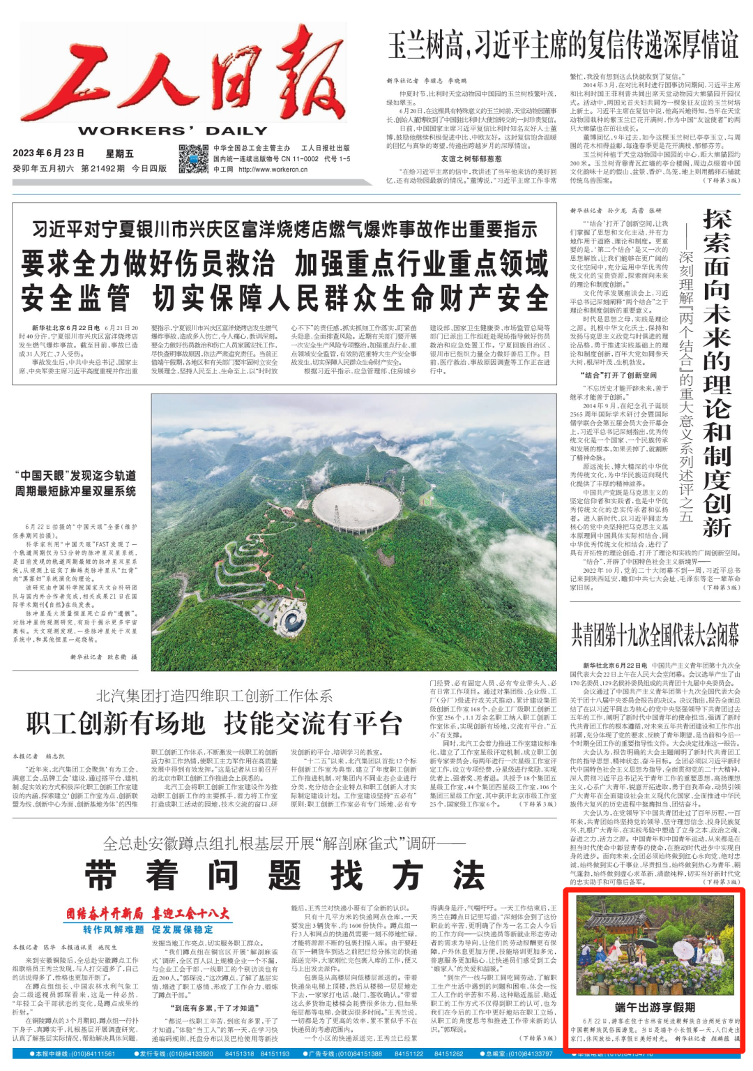 工人日报一版刊发《端午出游享假期》,图文报道游客在延吉市中国朝鲜族民俗园游览。