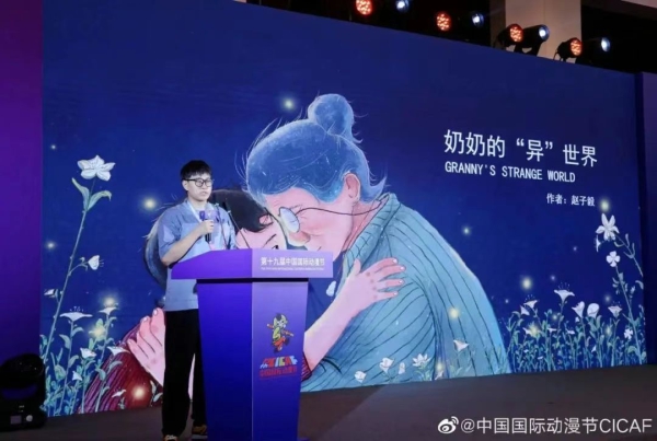 第十九届中国国际动漫节“金猴奖”大赛颁奖仪式日前在浙江杭州举行。由吉林艺术学院选送,美术学院版画系插图工作室赵子毅同学毕业绘本创作《奶奶的“异”世界》荣获第十九届中国国际动漫节“金猴奖”大赛潜力奖漫画。