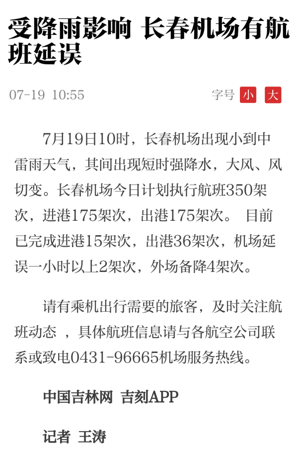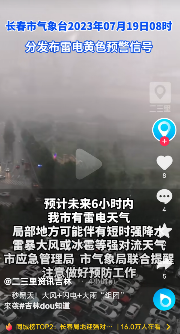 19日8时55分,长春气象台就发布了雷电黄色预警。