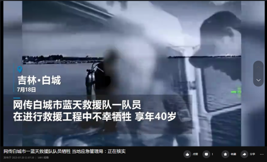 近日,一段《网传白城市一蓝天救援队队员牺牲》的视频在网络上转载。