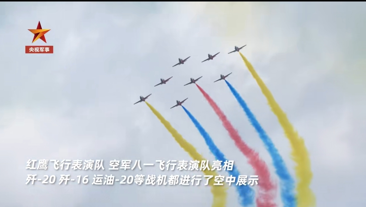 视线转回长春。今天上午,空中飞行表演的预演在空军长春机场展开。歼-20、歼-16、运油-20等战机进行了空中展示,空军“八一”和“红鹰”飞行表演队也亮相。