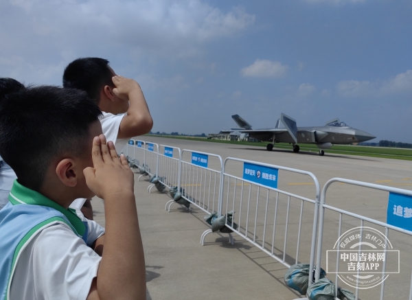 中国吉林网记者看到,两位小朋友向着朝他们驶来的歼-20郑重敬礼。