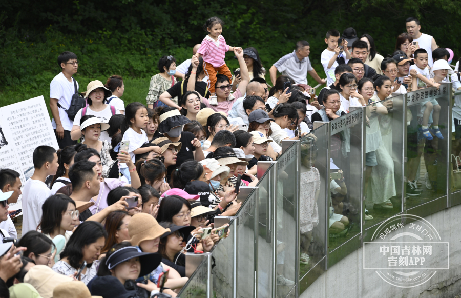 鲜花、水果、条幅……饲养员精心布置了馆舍还为“初心”准备了丰盛美食,用竹子和水果制作了“美食花篮”,用各种水果和蔬菜汁冻成冰块制作了一个既美味又解暑的“蛋糕”。“初心”迈着悠哉的步伐走了出来,先是给大家卖了一番萌,然后开心地享用起美食来,大熊猫憨态可掬的样子逗得在场的游客兴奋不已。