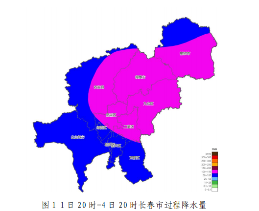 1日傍晚到夜间,榆树有大到暴雨,降水量40~70毫米;长春市区、九台、德惠、农安有中到大雨,降水量20~40毫米;其他地方有中雨,降水量10~20毫米。