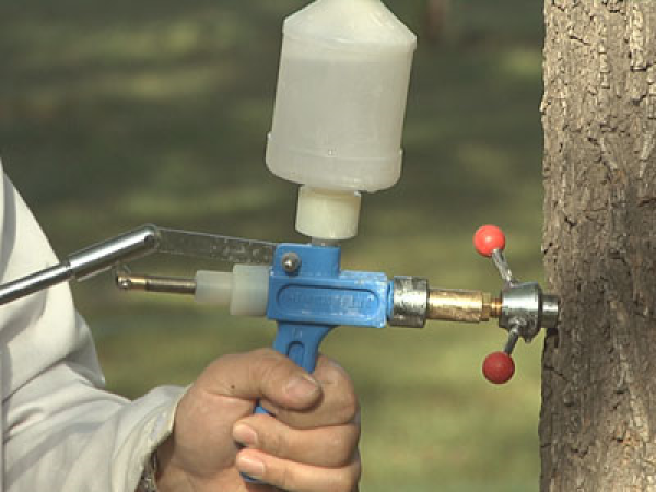 首先是化学治理措施,也就是为注射花芽抑制剂。此种方法主要是抑制来年的飞絮,目前应用比较广泛。杨柳树的花芽分化时间在雌株开始飞絮后2个月内完成,根据此特性,可在杨柳树花芽分化前将抑制剂注射到树体内,从而使雌株第二年不开花,达到减少飞絮的目的。
