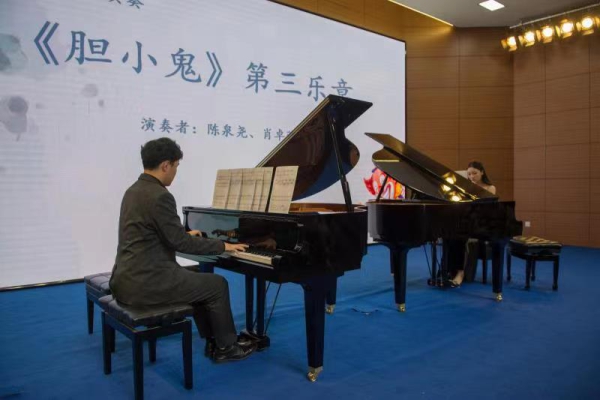 双钢琴《胆小鬼》《小河淌水》《勇敢的心托卡塔》《四季歌》,独奏《思恋》《阳关三叠》《肖邦第二谐谑曲》《流水》,八手联弹 《对花》,不同的曲目,不同的内容,不同的演奏风格,表演却同样精彩。在这场音乐会中,除了独奏这种最常见的钢琴演奏形式,还使用了双钢琴、八手连弹这两种不常见的钢琴演奏形式。