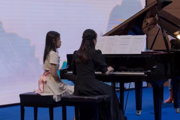6位曾分获国内外各类钢琴赛事奖项的青年表演者,展示出了精湛的演奏技巧。文化讲堂内,三角钢琴恢弘而不失曼妙,清澈而又华丽的声音撼动人心,令人迷醉其间。
