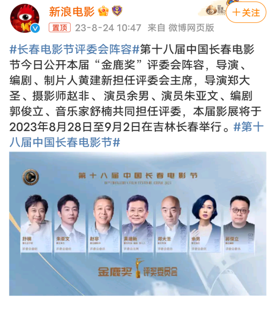 再开看看本地热搜。据报道,第十八届中国长春电影节“金鹿奖”评委会阵容公布,导演、编剧、制片人黄建新担任评委会主席,导演郑大圣、摄影师赵非、 演员余男、演员朱亚文、编剧郭俊立、音乐家舒楠共同担任评委。