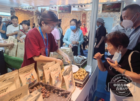 在延边州展位,“延边好物”展示区域每天都能吸引众多逛展者前来选购,百余种商品也让人挑花了眼。