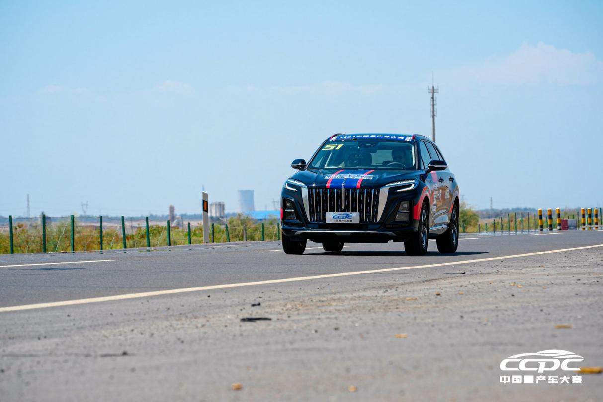 高阶性能,驰越火洲。在CCPC吐鲁番极限站中,主办方充分结合吐鲁番地区50℃体感温度、超80℃地表温度以及复杂路况等地域特色,设置了高温能耗测试、高温性能综合体验赛、空调降温测试等项目。高温和阳光暴晒而导致车内的温度飙升,对用户的用车安全性、舒适性都会造成极大影响,因此,夏季的驾乘舒适性是本次大赛的重点考核项目之一。红旗HS3与炽烈极温展开博弈,在多个科目中都展现出超高水准。空调降温测试项目中,红旗HS3车内5分钟内即可降低温度至43℃;极热赛道上,红旗HS3面对城市道路、高速路段、国道、山路、非铺装路面交替上阵的复杂路况,车身姿态依旧稳健,轮胎抓地力良好、车辆循迹能力干脆利落,直线加速时,2.0T+8AT的动力组合响应迅速,爆发出185kW的最大功率,为驾乘人员带来了丰沛的驾驶乐趣。同时,红旗HS3还以红旗自主发动机的先进节能技术保证了较低的能耗水平,整体表现十分优异,最终斩获了紧凑型SUV组金奖。