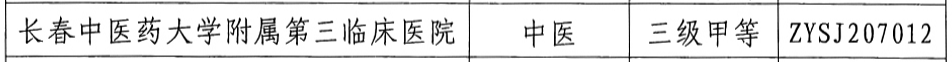 2023年9月19日,国家中医药管理局医政司针对吉林省中医药管理局《关于报送吉林省三级中医医院等级评审情况的函》正式发文回执,确定了长春中医药大学附属第三临床医院为三级甲等中医医院。