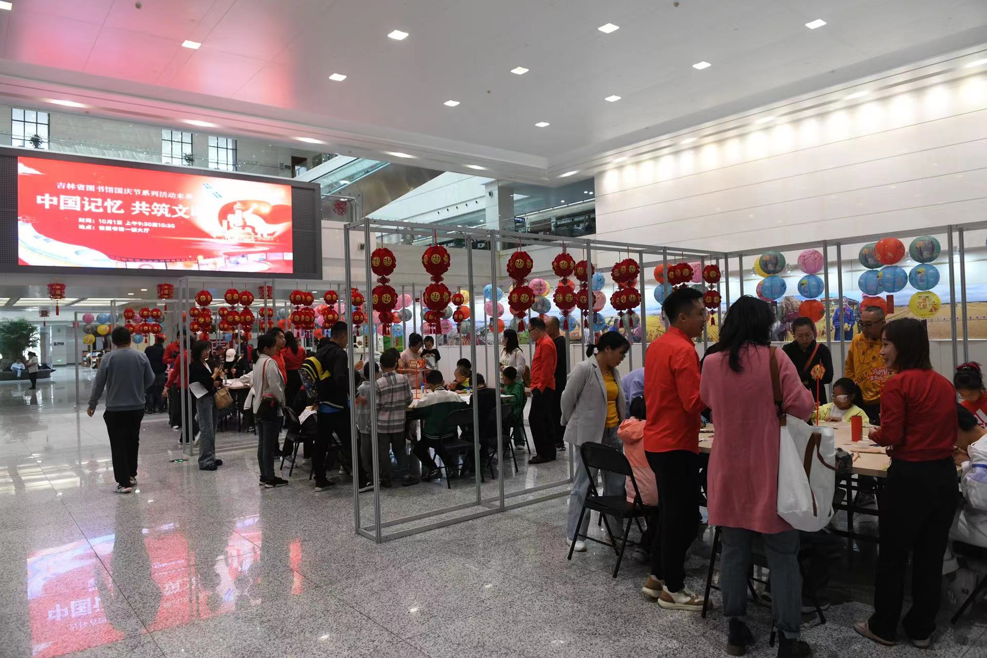 10月1日上午9:30,吉林省图书馆“中国记忆 共筑文明”国庆系列活动在一楼大厅火热开启。读者们相聚于此,通过沉浸式传统节庆体验活动,表达对祖国的深情厚谊。