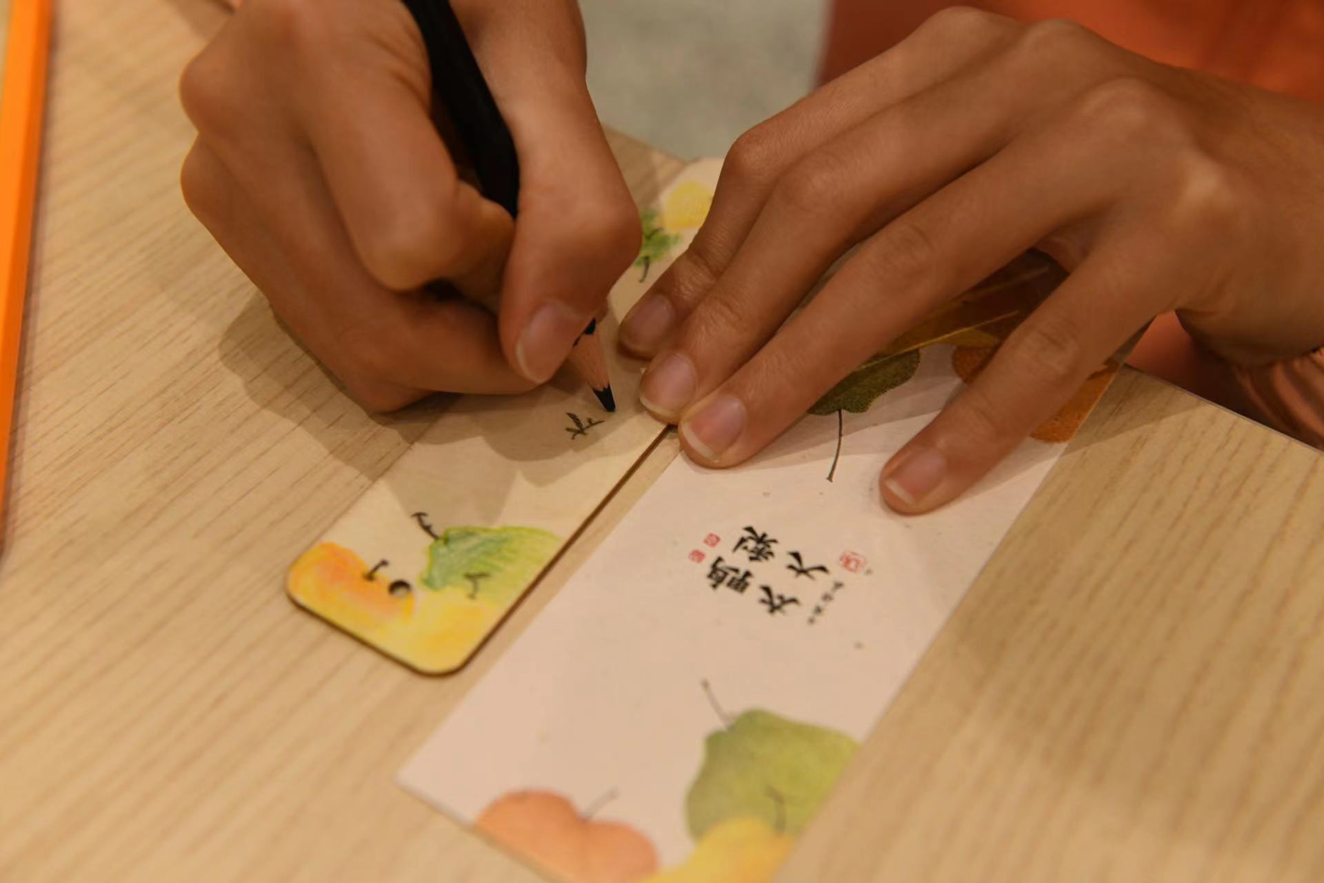 书签有形,情谊无形。书签与书相伴,传承千年,是夹在书页里的记忆,亦是对知识的渴望。在“书香的记忆”体验区,读者们拿起手中的画笔,在书签的一面摘抄书中的精彩句子,或是书写读后感;在另一面精心绘制图案、设计造型,一枚枚漂亮又富有意义的书签就这样绘制好了。自制的创意书签,承载着读者们对读书的热爱,对生活的感悟。