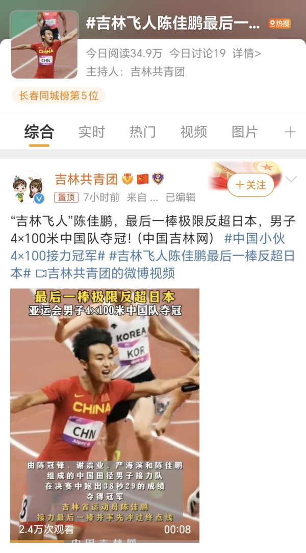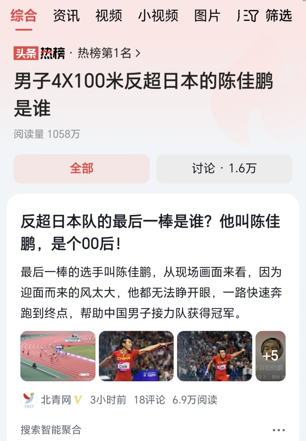 最令人热血沸腾的当属男子4×100米接力决赛,“吉林飞人”陈佳鹏最后一棒极限反超日本队,为中国军团夺得这块宝贵的金牌。