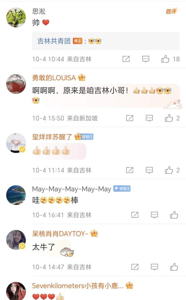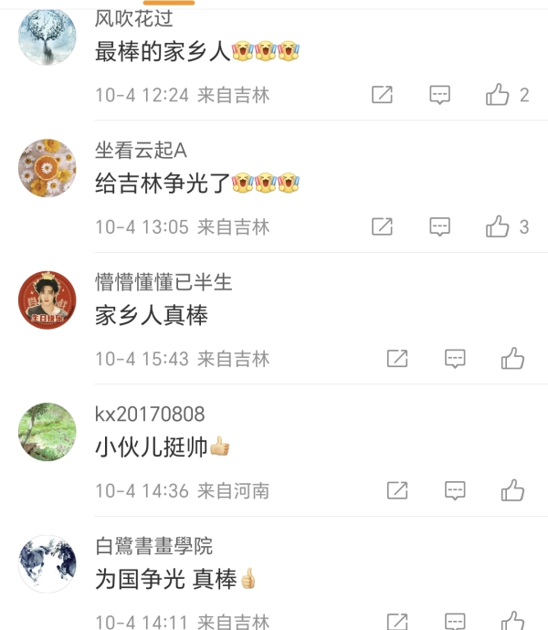 网友们也纷纷为陈佳鹏点赞——“小伙儿真帅”“我们吉林的,牛!”
