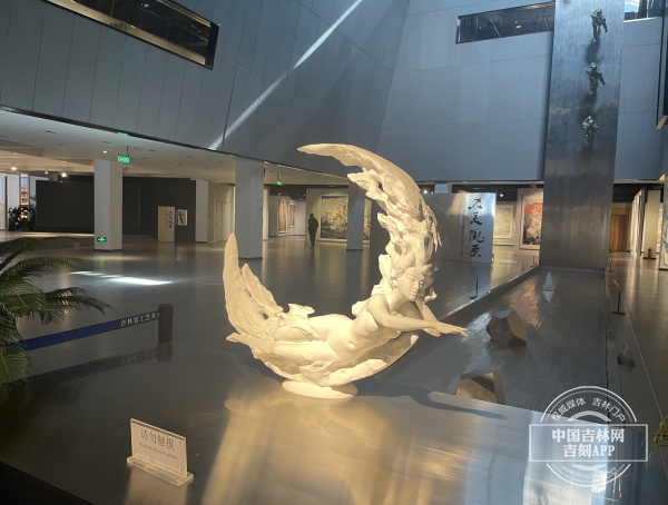 市民正在吉林省美术馆、吉林省民间工艺美术馆拍照打卡