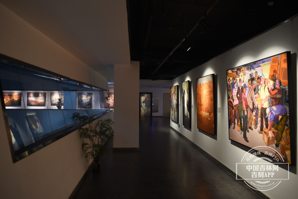 大厅正中,“大美陇原”甘肃画院暨甘肃青年优秀美术作品吉林交流展的巨型海报映入眼帘,周边展厅内油画环绕,有不少市民在此驻足,大学生们纷纷拍照打卡。