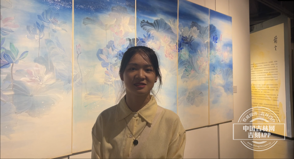 来自长春人文学院的大一学生林同学也来到了吉林省美术馆,她说:“我刚刚军训结束,趁着国庆假期来到美术馆打卡,尤其是我背后这幅画,让我好像洗涤了心灵一般,非常治愈。选择来美术馆也是想培养一下自己的爱好,陶冶一下情操。”