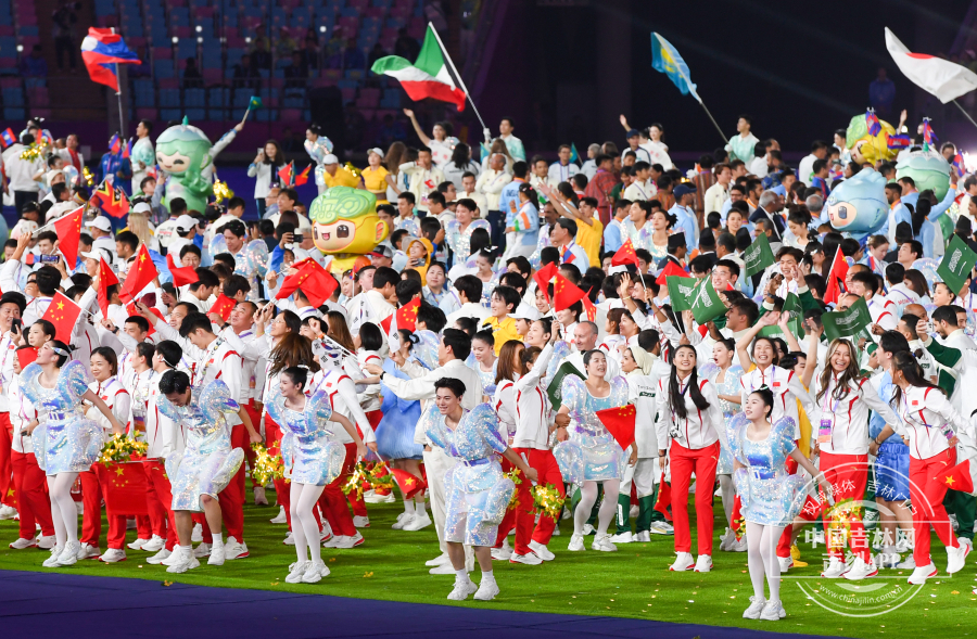 杭州第19届亚运会闭幕式,参加闭幕式代表团走下舞台