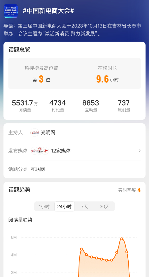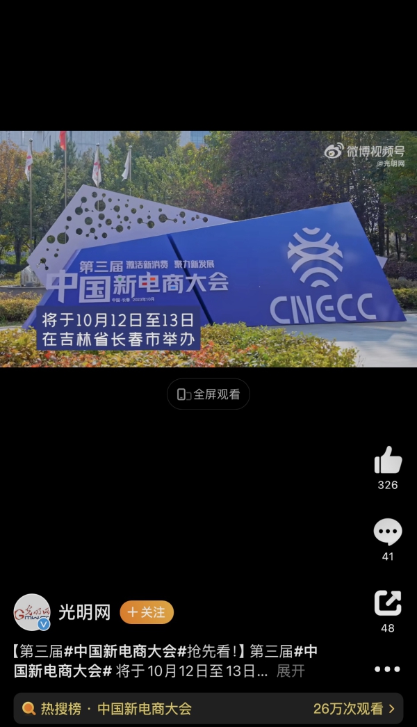 原来这是10月12日至13日在吉林长春举办的第三届中国新电商大会,今天也登上了微博的同城热搜榜。