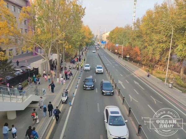 10月24日6时50分,长春市繁荣路上,东北师范大学附属小学(繁荣校区)门前,学生们在“护学岗”人员的引导下有序进入校园。在交警的指挥下,接送孩子的车辆即停即走,交通秩序井然。