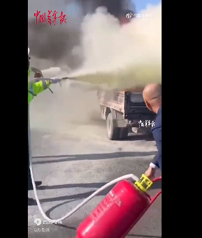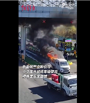 这不,上一秒,货车起火,揪心!下一秒,飞奔灭火,暖心!