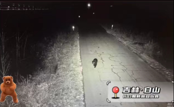近日,长白县公安局马鹿沟边境派出所民警开展视频巡查时,在马鹿沟镇二十道沟村东侧800米处的公路上发现一只黑熊,上演现实版“熊出没”。