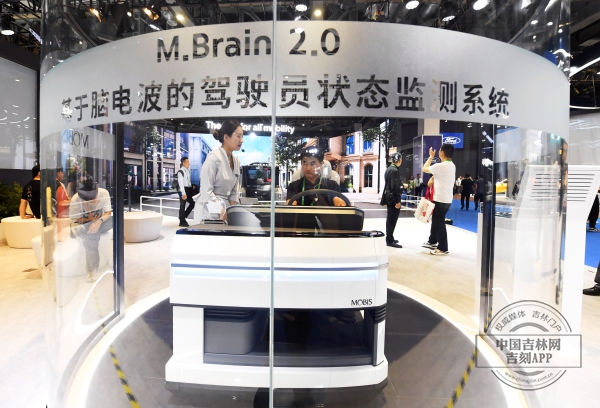 这是全球首创的驾驶员状态监测系统在中国的首展。通过脑袋波信号,监测驾驶员出现的疲劳、困乏、注意力不集中等情况,可以发出三个维度的示警信号,确保车内司乘安全。这个“黑科技”不一般!