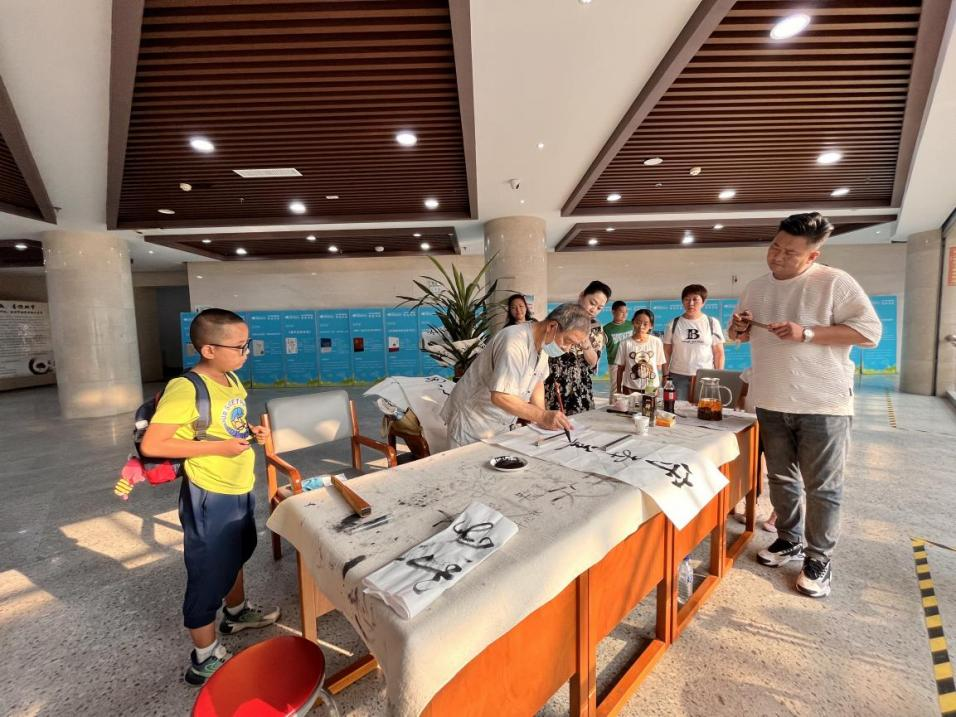 继国学书画展出后,再续2023“敬老月”篇章。书刊流通部开展了以“墨香四溢 妙笔传承”为主题的老年书画作品展。这次展览作品内容紧紧围绕“彩绘美好新时代、新生活”主题,以银龄之妙笔绘就中华民族伟大复兴之盛景。此外,在书画展首日同步举办了老年读者书画笔会。书法、美术领域的老艺术家们一起参加书画笔会,他们挥毫泼墨、各展所长,创作出一幅幅劲道洒脱、寓意深刻的书法作品和绘画作品,以墨香传颂家国情、礼赞新时代。