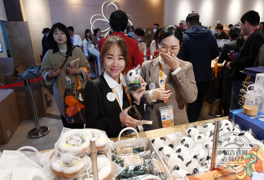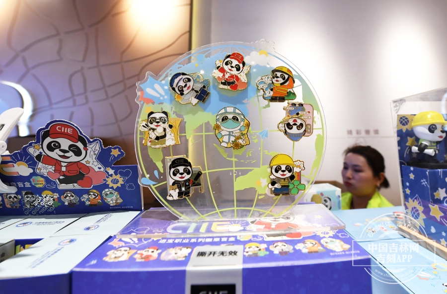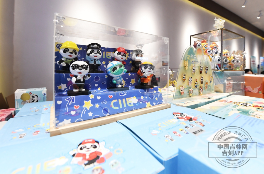 大家都知道,中国国际进口博览会吉祥物的名字叫“进宝”,以中国“国宝”大熊猫为设计原型。国展文创馆里“进宝”的衍生商品、伴手礼等深受参观者的喜爱。
