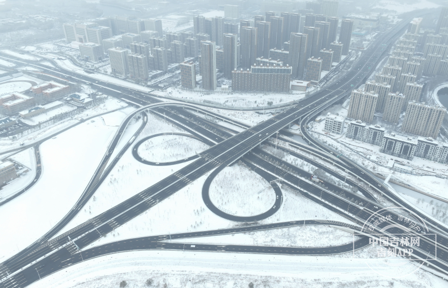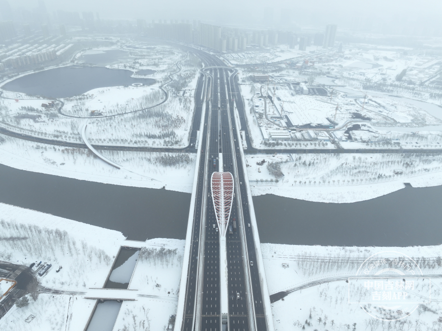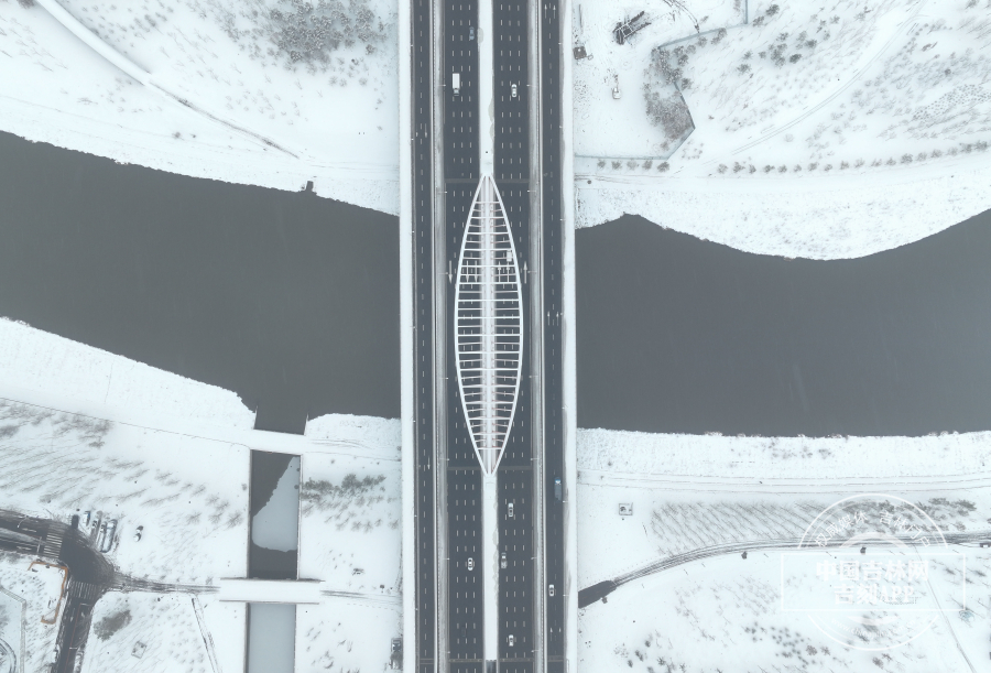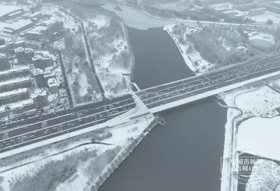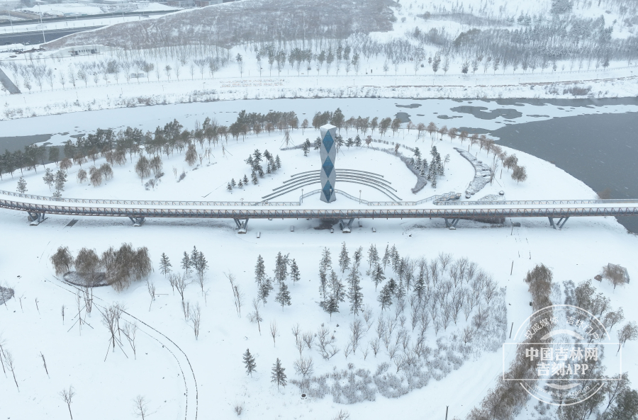 2023年11月9日,长春市持续降雪,中国吉林网记者带来一组雪中伊通河沿岸的航拍景色。