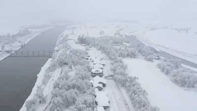一般来说,雾凇形成的前夜,松花江会有大雾出现
