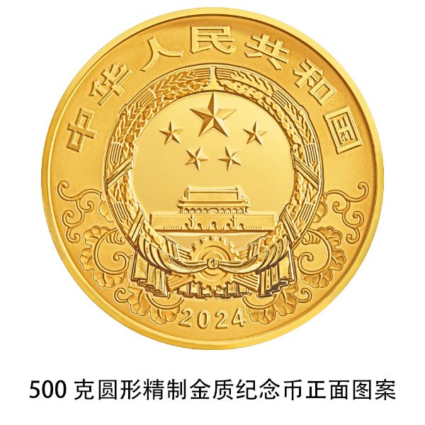 500克圆形金质纪念币为精制币,含纯金500克,直径80毫米,面额5000元,成色99.9%,最大发行量500枚。