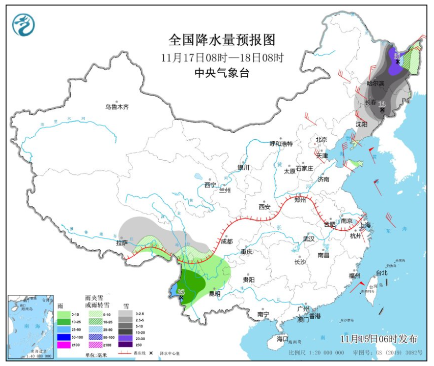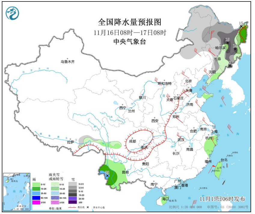 16日凌晨开始,长春市将自西向东出现雨夹雪;