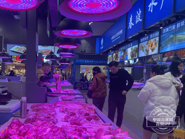 11月22日,中国吉林网记者分别走访多家农贸市场、商超和生鲜超市,发现大部分商铺仍在使用“生鲜灯”,生鲜猪肉在一片红色灯光照射下,显得红润有光泽。有卖猪肉摊主坦言,不用“生鲜灯”会影响生意。