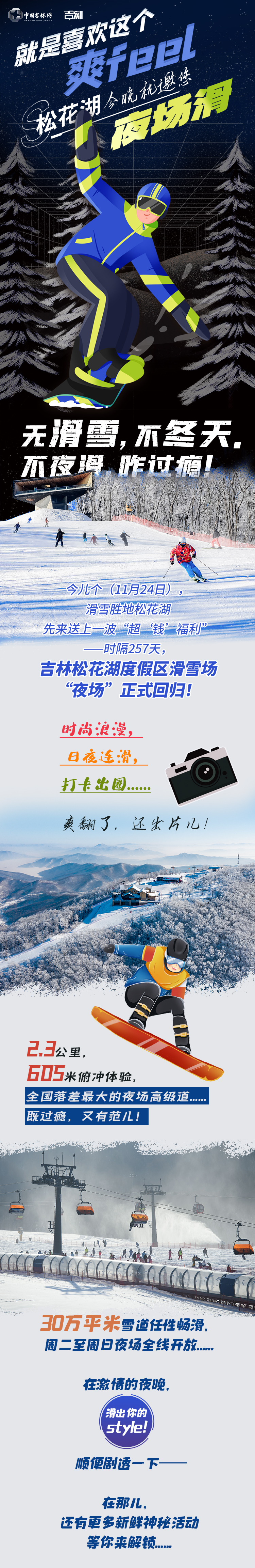 今儿个(11月24日),滑雪胜地松花湖先来送上一波“超‘钱’福利”——时隔257天,吉林松花湖度假区滑雪场“夜场”正式回归!