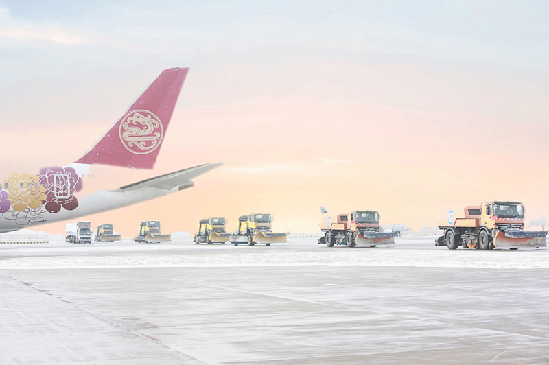 在“3-5-5-1”整体工作方针的推动下,长春机场不断提升除冰雪作业技能。机场首创的“单机位四车”和“三机位八车”交互作业模式,将航空器除冰时长平均缩短至3分钟内,最短仅为1分钟;编写了《公共运输机场航空器怠速除冰技术规程》团体标准获得中国交通运输协会批准立项,持续推进行业内慢车除冰技术标准的建立,推动行业整体冬季运行保障效率的提升;探索创新航空器地面防冰新模式,针对航空器除冰工作的“预、防、护、除”四方面,研究制定航空器全包围物理防护设备操作使用新方法,将“预防和保护”从理论层面落实到实际保障工作中,不仅降低了航空器除防冰液的使用量,减少化学物质对地面及设备的侵蚀,更避免了航空器关键部位结冰后物理清除时的适航安全隐患。