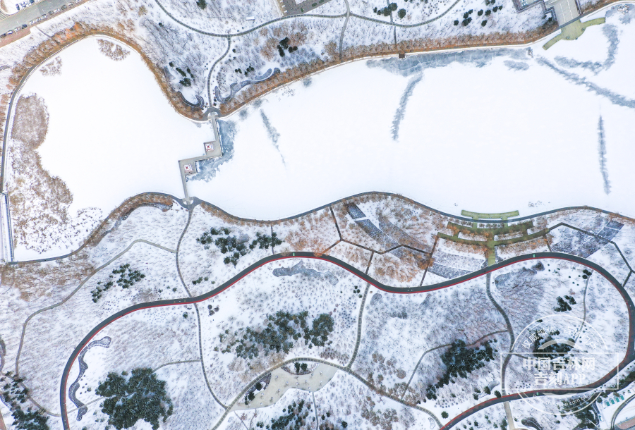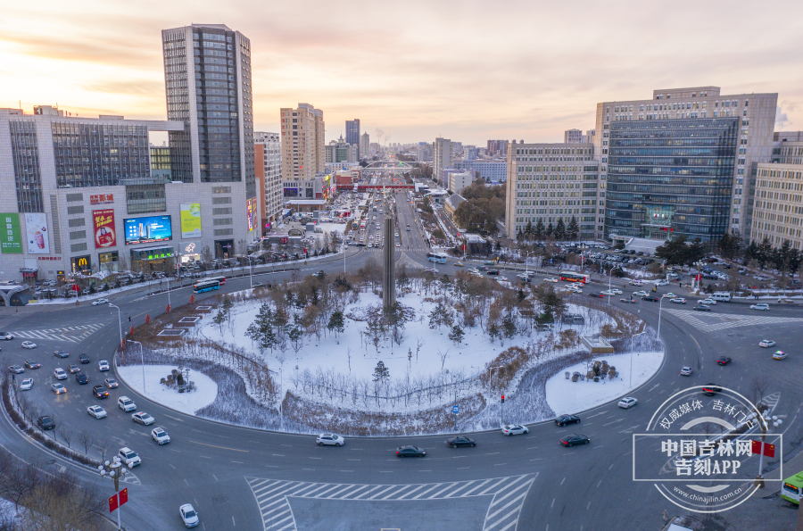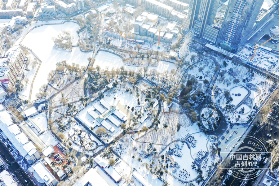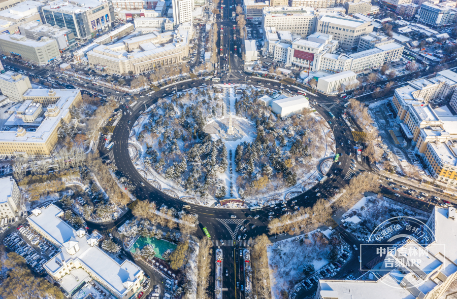 冰雪覆盖下的长春,给人以宁静、典雅的氛围。图为航拍镜头下的人民广场。