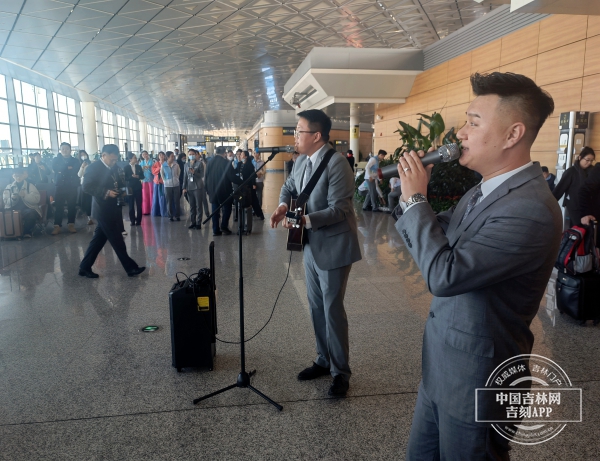 “我怕我没有机会,跟你说一声再见,因为也许,就再也见不到你,我会牢牢记住你的脸,我会珍惜你给的思念……”一首《再见》,让留恋不舍的情感在候机楼内慢慢传开,感染着周围出行的旅客。吉他悠扬的旋律,感人的歌词让人陷入遐想。