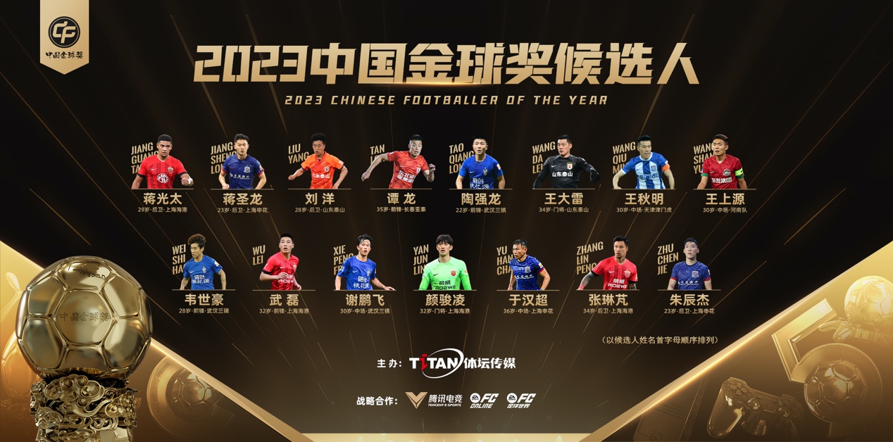 2023年,中国足坛和各项赛事全面恢复,各级国字号的比赛也较前几年大幅增加。根据球员在本年度俱乐部联赛、杯赛、国字号大赛以及亚冠等赛事的整体表现,15位男球员入选了2023中国金球奖候选名单。