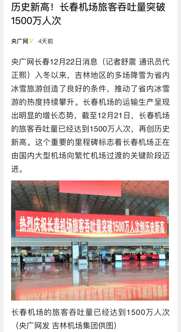 看得出来,吉林省对“招揽游客”真的下“血本”了!不过有投入就有回报,长春机场这一波数据表明,这一切都是值得的。