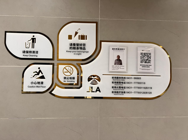 为践行低碳环保的发展理念,长春机场对T2航站楼内23个卫生间的卫生质量监督公示牌和大盘纸盒进行美化改造。卫生质量监督公示牌以简约的金色线条勾勒出四叶草的形象,简单直观的展示卫生间保洁员信息、提示标语、常用电话以及服务质量监督二维码,旅客可以通过扫描公示牌上的二维码,了解卫生间的详细信息。大盘纸盒以绿色为主色调,配上节约环保的提示语,号召广大旅客“节约用纸,低碳生活”,让出行旅客的如厕体验更加健康、安全、贴心。