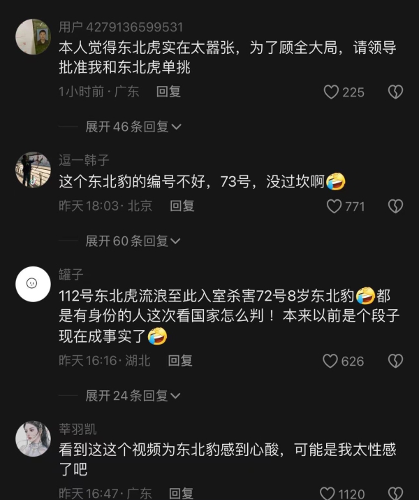 简单来说,就是112号东北虎在未经73号东北豹允许的情况下“私闯民宅”并“入室行凶”,网友们纷纷调侃:这到底刑不刑?