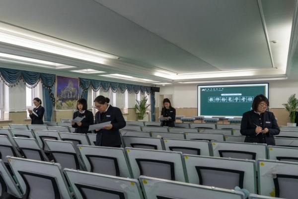 聚焦“考试”现场。所有参赛教师认真书写,一丝不苟,横竖撇捺工整美观,尽情地挥洒手中的粉笔,有的提按分明、粗细变化明显,有的行云流水、一气呵成,有的自然舒展、运笔遒劲……参赛教师们用精湛的书写技能为大家呈现了一场精彩的粉笔字盛宴。