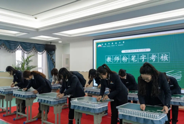 中国吉林网记者了解到,为促进教师专业发展,提高教师教学基本功水平,展示教师良好的职业素养,该校教师一直坚持练习粉笔字。每周各学科根据自己的学科特点设计特色粉笔字板书,教师们都认真书写并在办公区展示,形成一种互相学习,自觉练习的良好氛围。