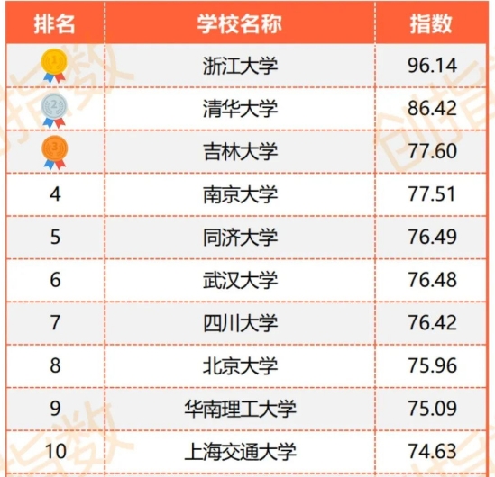2023年12月,第三方高校创新创业教育评价研究咨询服务机构“创指数”正式推出“2023年中国高校创新创业教育指数榜”,吉林大学超越北京大学、武汉大学、南京大学等高校,位列第三名。